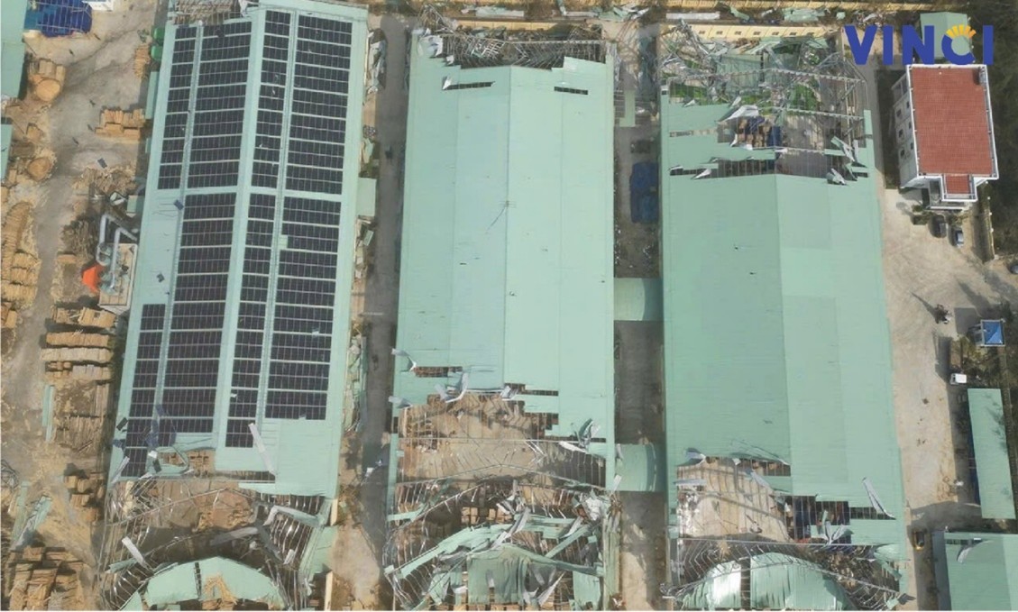 Những năm gần đây, Việt Nam hứng chịu nhiều gió bão lớn đổ bộ vào đất liền, nhiều mái nhà xưởng bị bay lốc mái. Thực tế cho thấy những mái nhà xưởng lắp đặt tấm pin mặt trời ít chịu tác động bởi gió bão và có khả năng chống chịu gió tới cấp 15 – 16.