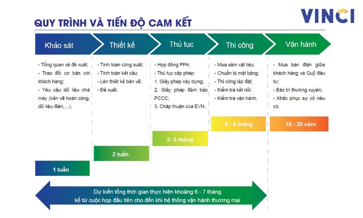 Quy trình và tiến độ cam kết từ VINCI khi lắp đặt hệ thống điện mặt trời