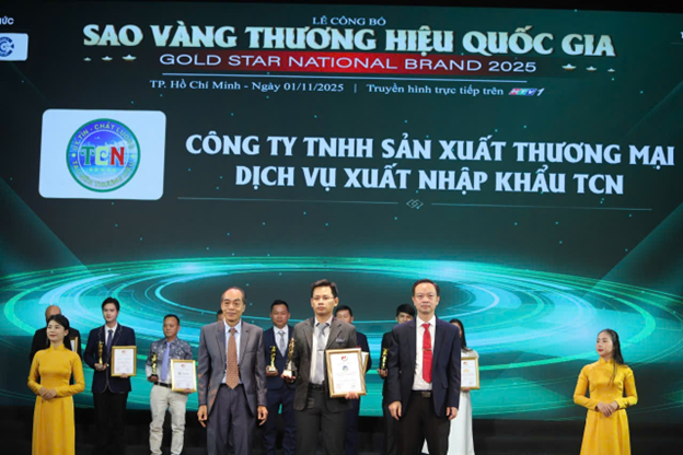 Ngày 1/11/2025, tại Nhà hát Bến Thành, Quận 1, TP. Hồ Chí Minh, Công ty TNHH Sản xuất – Thương mại – Dịch vụ – Xuất nhập khẩu TCN đã vinh dự được vinh danh trong Top 10 “Sao Vàng Thương Hiệu Quốc gia 2025”, thuộc khuôn khổ chương trình “Sao Vàng Thương Hiệu Quốc Gia”. Đây là một trong những giải thưởng danh giá, uy tín hàng đầu Việt Nam, được tổ chức bởi Viện Nghiên cứu Kinh tế Châu Á, Viện Khảo sát Đánh giá Chỉ số Cạnh tranh, Liên hiệp Khoa học Phát triển Doanh nghiệp Việt Nam, phối hợp cùng Đài Truyền hình TP. Hồ Chí Minh – HTV1.