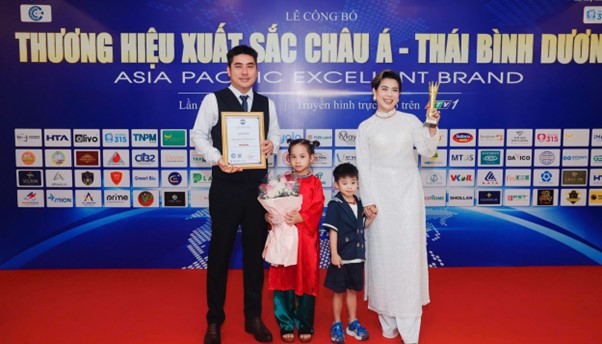 Doanh nhân Kat Lưu (ngoài cùng bên phải) cùng gia đình nhỏ tham dự Lễ vinh danh.