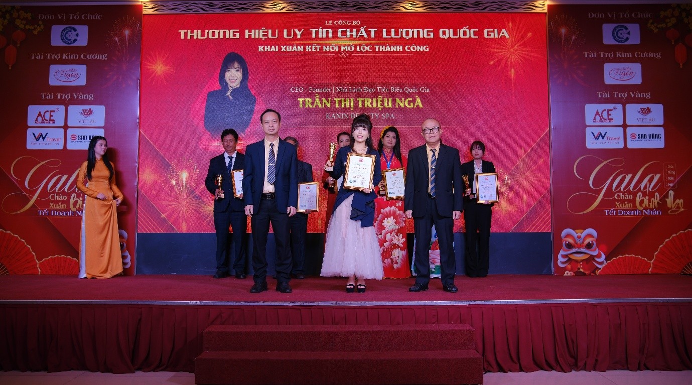 Trong khuôn khổ chương trình “Thương Hiệu Uy Tín–Chất Lượng Quốc Gia” được tổ chức ngày 01/02 tại TP. HCM, doanh nhân Trần Thị Triệu Ngà– CEO & Founder thương hiệu Kanin Beauty Spa – đã vinh dự được trao tặng Giải thưởng “Nhà Lãnh Đạo Tiêu Biểu Quốc Gia".