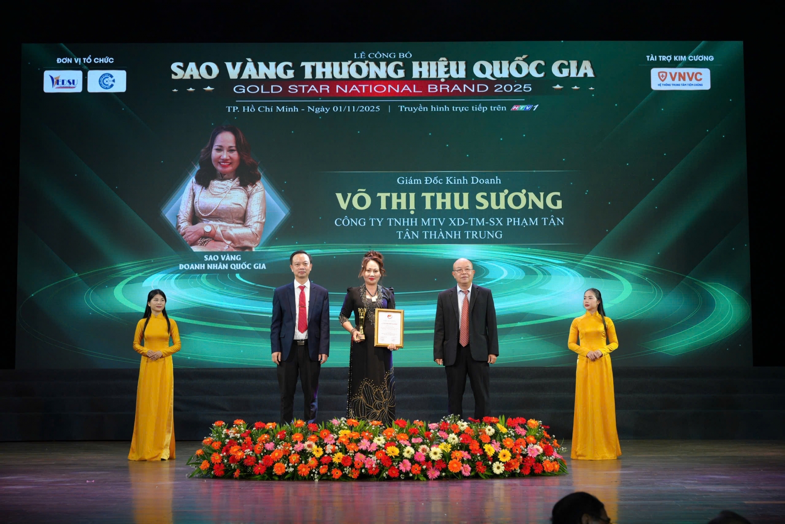 Nhờ sự nỗ lực không ngừng trong quản trị và phát triển, thương hiệu Phạm Tân - Tân Thành Trung đã vinh dự được vinh danh trong Top 5 – Sao Vàng Thương Hiệu Quốc Gia, đánh dấu bước tiến quan trọng trong hành trình khẳng định chất lượng và bản sắc doanh nghiệp Việt trên thị trường trong nước và quốc tế.Với bản lĩnh, trí tuệ và khát vọng cống hiến, doanh nhân Võ Thị Thu Sương đang tiếp tục đưa Phạm Tân - Tân Thành Trung phát triển mạnh mẽ, trở thành biểu tượng của tinh thần Việt: dám nghĩ, dám làm, dám bứt phá vì một tương lai xây dựng hiện đại và bền vững.