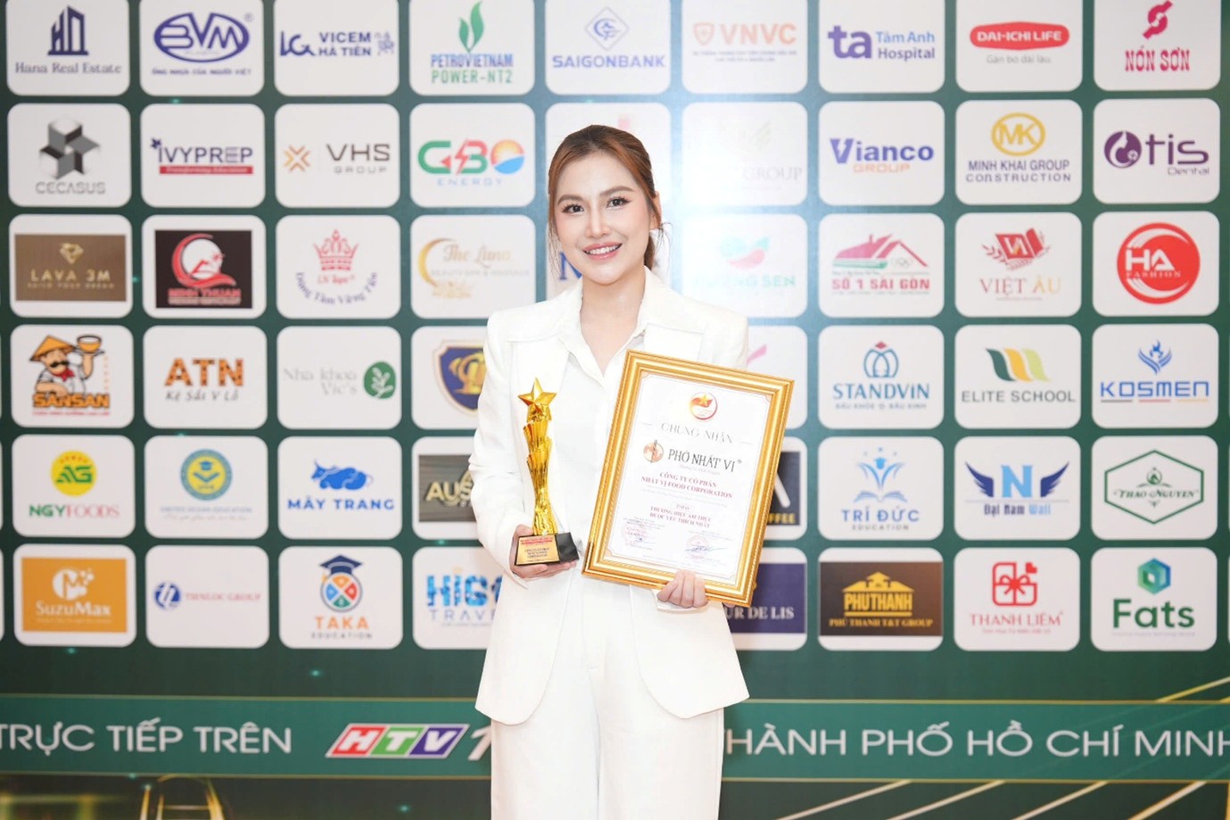 Bà Nguyễn Thị Huyền Trang – Giám đốc Công Ty Cổ Phần Nhất Vị Food Corporation đón nhận danh hiệu Top 10 - Thương Hiệu Ẩm Thực Được Yêu Thích Nhất 2025