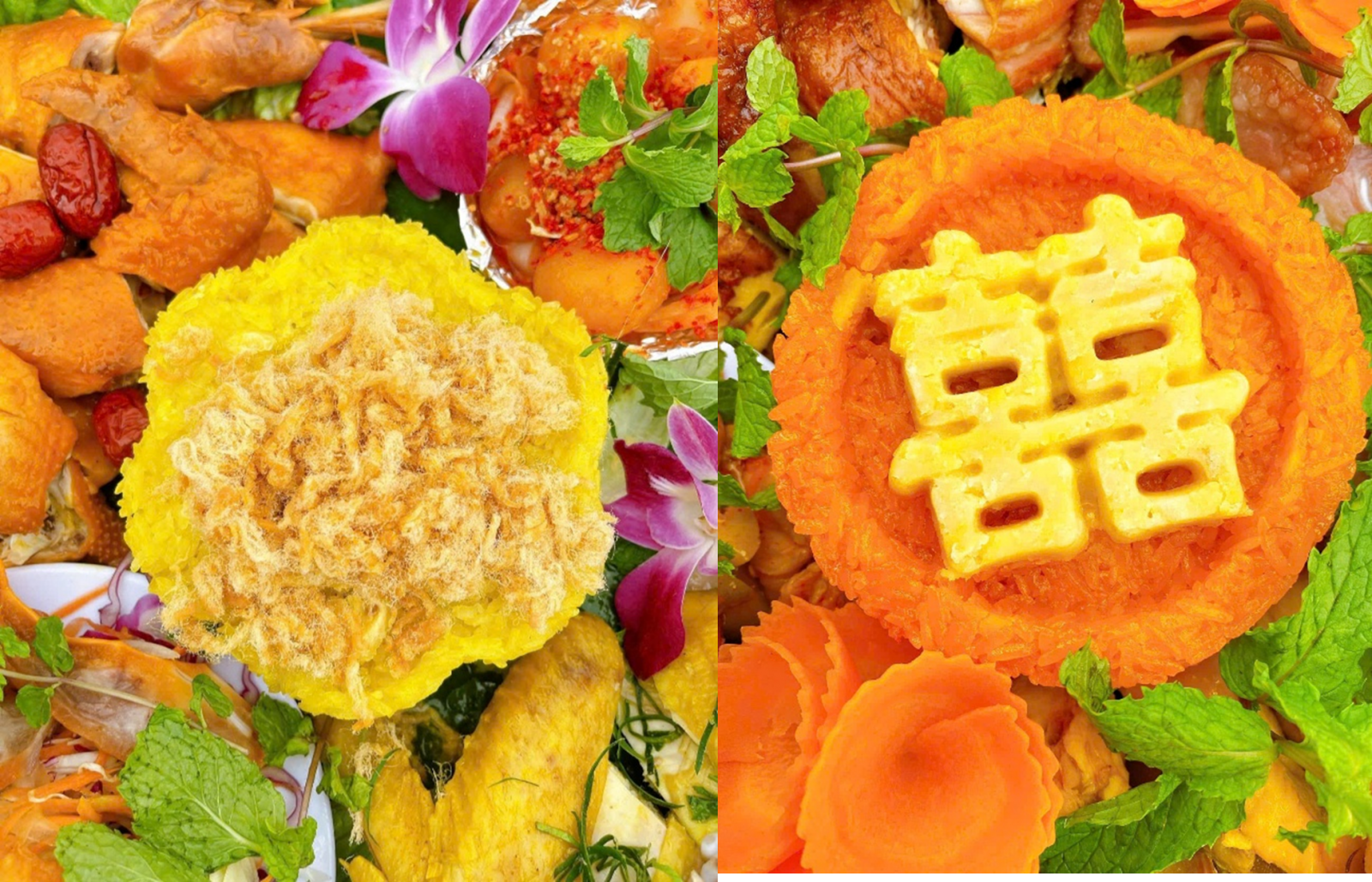 Để cân bằng và làm đầy trải nghiệm, xôi là phần không thể thiếu trong mỗi mẹt gà. Quỳnh Linh khéo léo đưa vào thực đơn những loại xôi không chỉ ngon mà còn đẹp mắt: