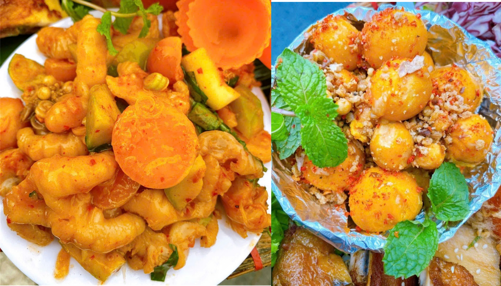 - Chân Gà Sốt Thái Trứng Non – vị cay chua đậm đà, chân gà giòn rụm, trứng non bùi bùi béo ngậy.