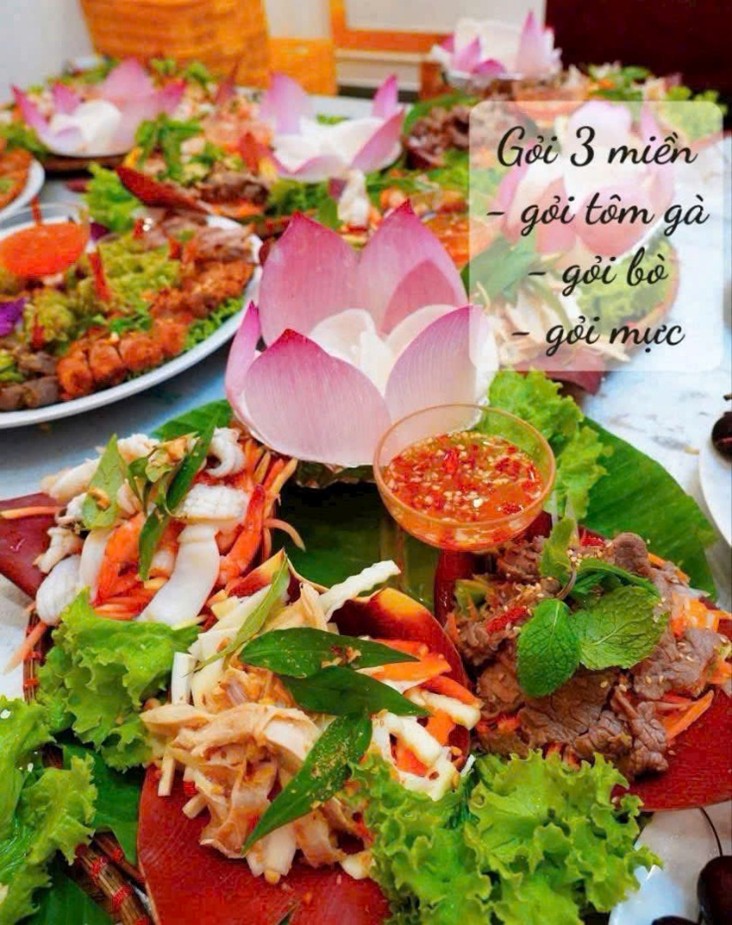 Nếu bạn muốn thưởng thức nhiều loại gỏi khác nhau nhưng không muốn gọi quá nhiều món, Gỏi Ba Miền chính là lựa chọn lý tưởng. Món ăn được tạo nên từ ba phần gỏi khác nhau, mỗi phần mang đặc trưng hương vị của ba miền đất nước.