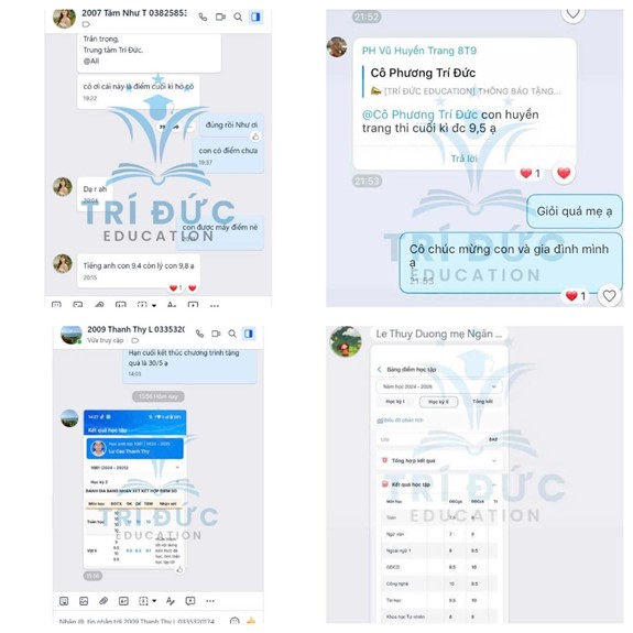 Không ít phụ huynh đã gửi lời cảm ơn chân thành sau khi chứng kiến sự tiến bộ rõ rệt của con mình: “Con đã tổng kết năm học, điểm tiếng anh của con tổng kết trên 9, so với kỳ 1 đã có sự tiến bộ hơn rất nhiều. Cảm ơn cô đã hướng dẫn dạy bảo con, hy vọng trong năm tới cô sẽ đồng hành cùng con, sát sao hơn nữa để con tiến bộ hơn nữa trong năm học tiếp theo.”